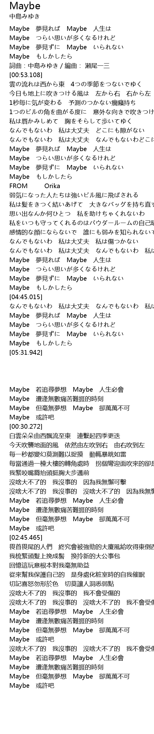 | [00:00.270] | Maybe 夢見れば Maybe 人生は |