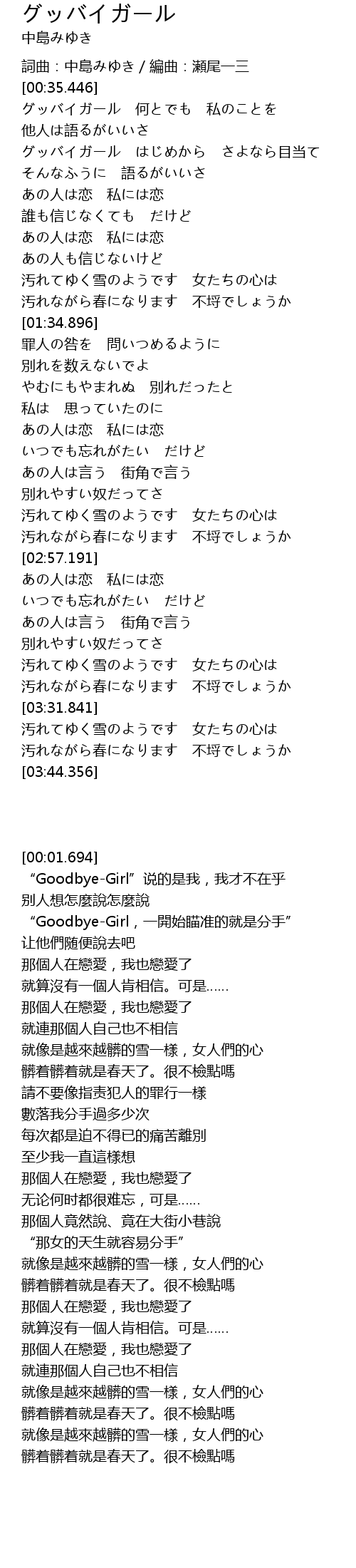 | [00:48.469] | グッバイガール はじめから さよなら目当て |