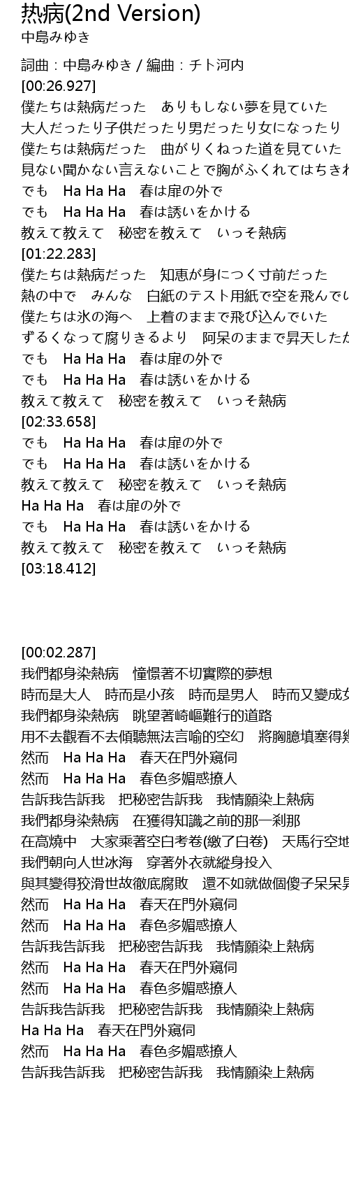| [02:56.740] | Ha Ha Ha 春天在門外窺伺 |