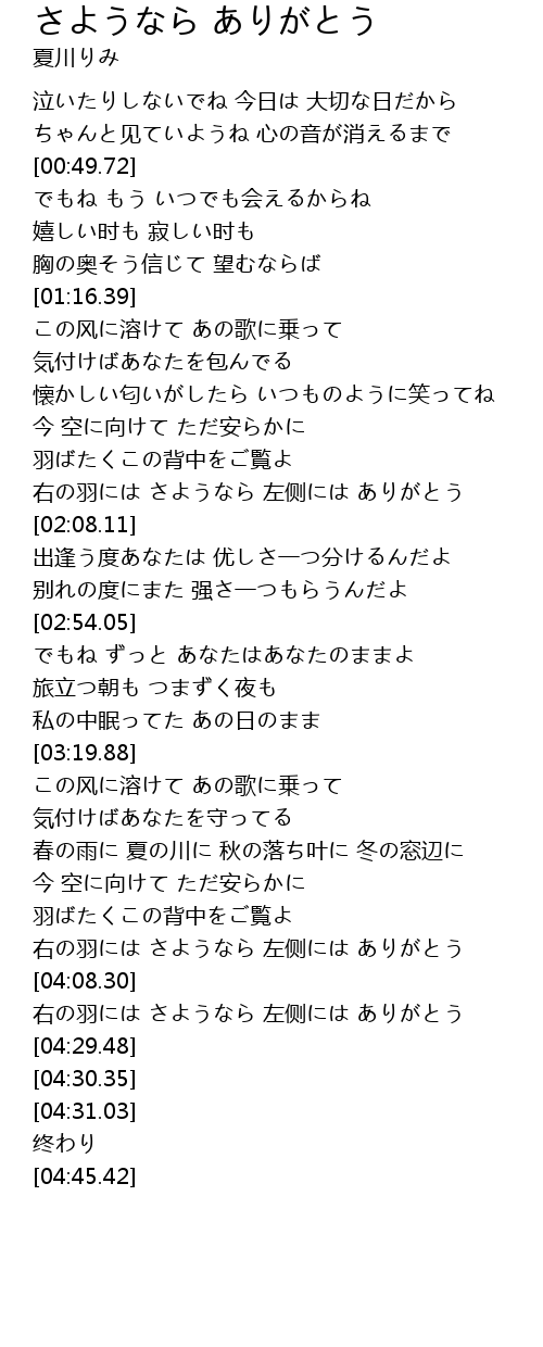 | [04:08.88] | 右の羽には さようなら 左侧には ありがとう |