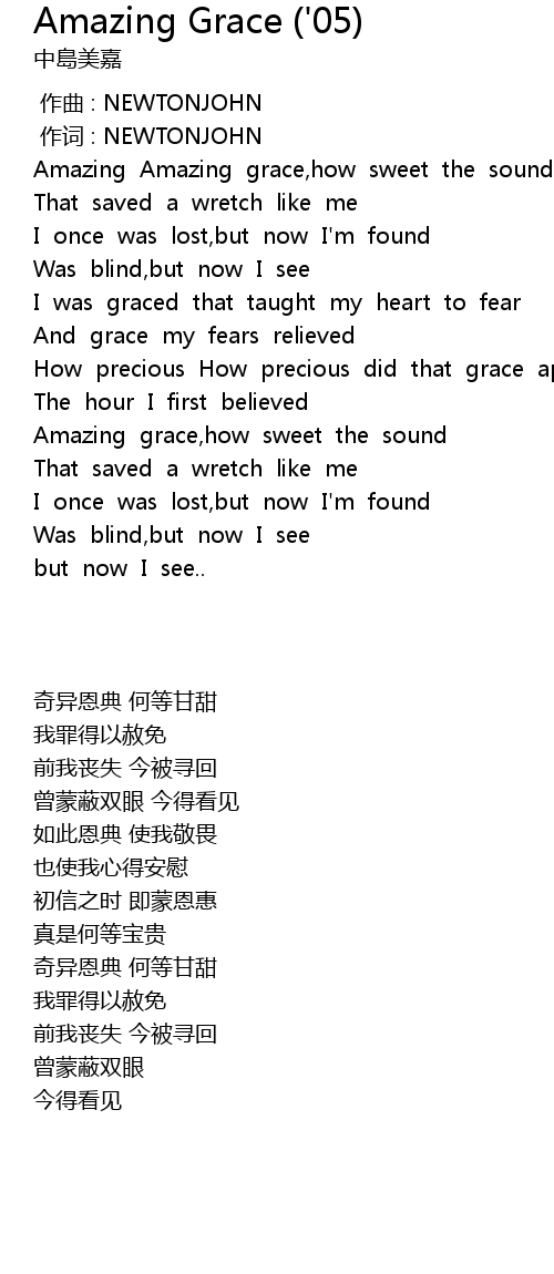 | [02:52.46] | Amazing grace, how sweet the sound |