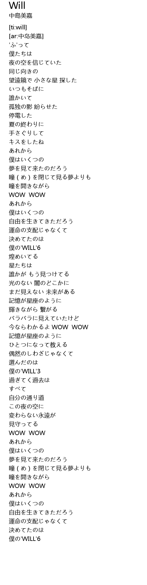 | [01:48.470] | 僕の'WILL'6 |