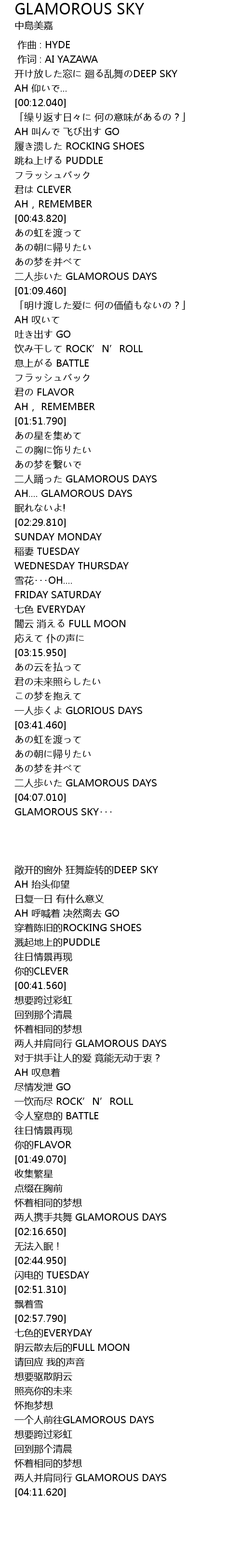 | [04:11.620] | GLAMOROUS SKY・・・ |