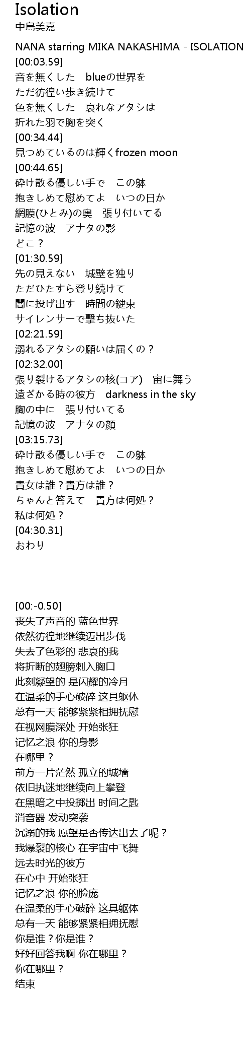 | [00:-0.50] | NANA starring MIKA NAKASHIMA - ISOLATION |