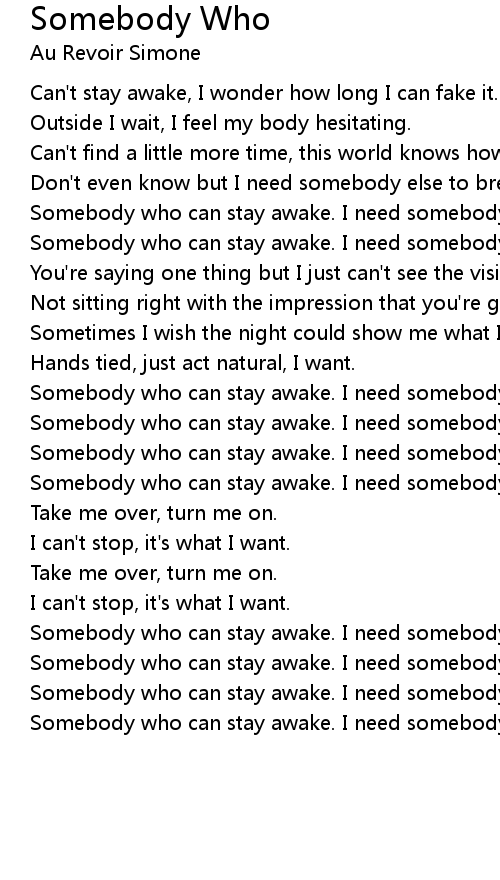 Somebody who can stay awake. I need somebody who. |