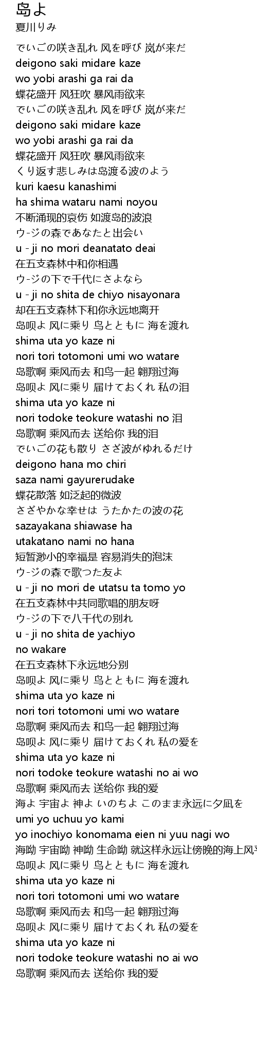 | 岛呗よ 风に乘り 届けておくれ 私の爱を | |