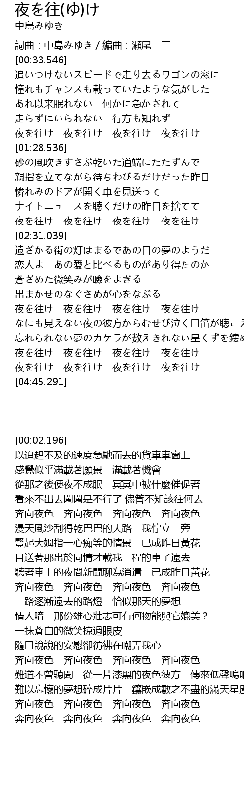 | [04:25.243] | 夜を往け 夜を往け 夜を往け 夜を往け |