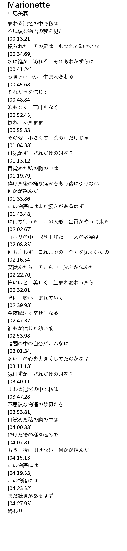 | [00:29.13] | 操られた その足は もつれて动けいな |