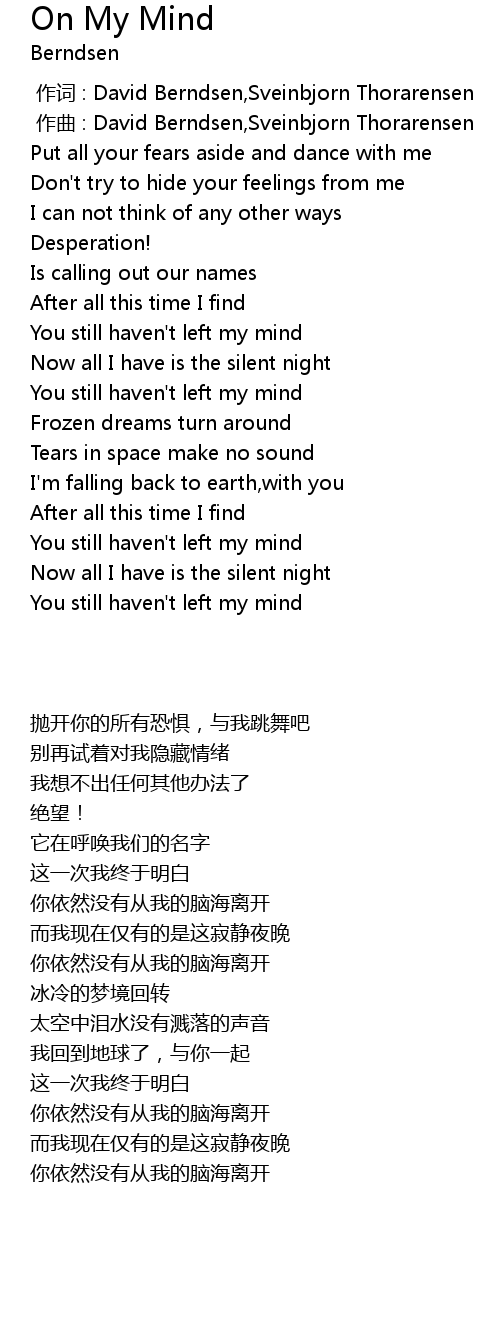 | 歌曲 | On My Mind |