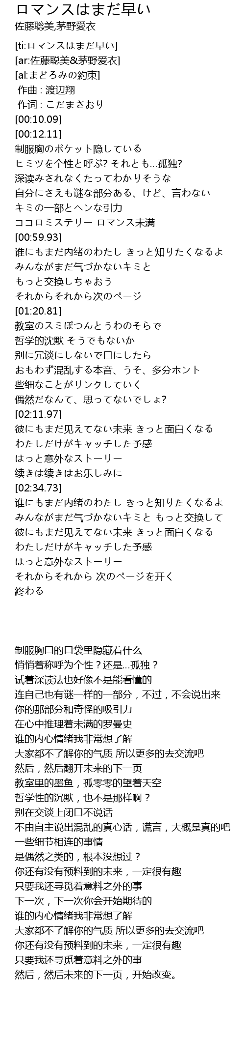 | [00:51.12] | ココロミステリー ロマンス未满 |