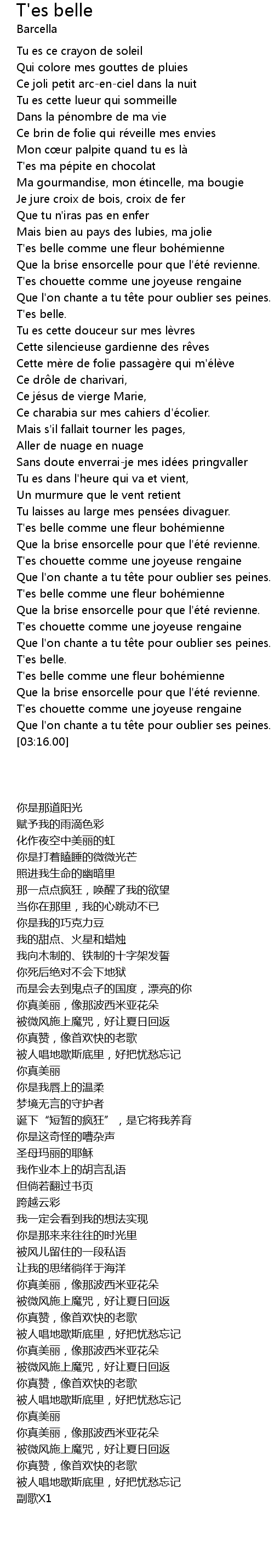 | [03:00.00] | T' es belle comme une fleur bohe mienne |