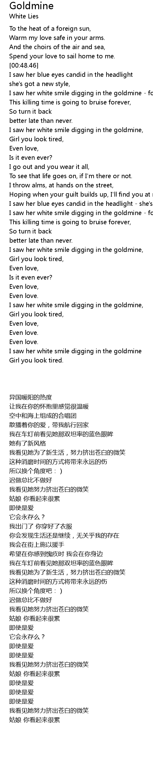 I saw her white smile digging in the goldmine |