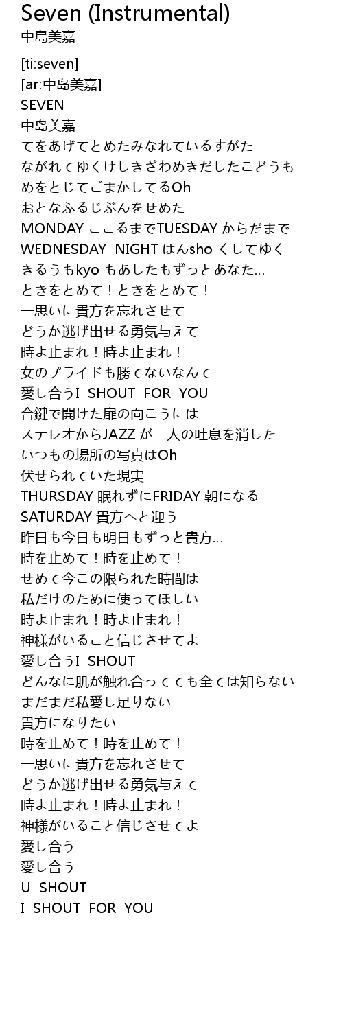 | [00:52.04] | WEDNESDAY NIGHT はんsho くしてゆく |