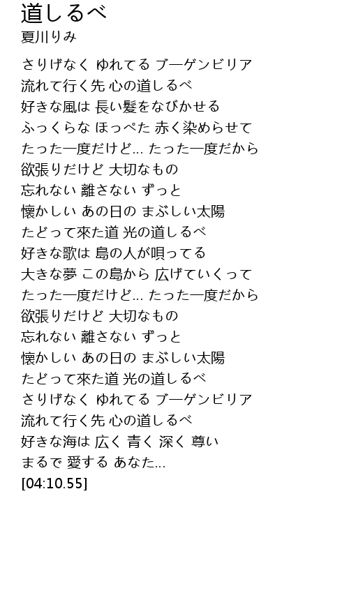 | [00:17.19] | さりげなく ゆれてる ブ一ゲンビリア |