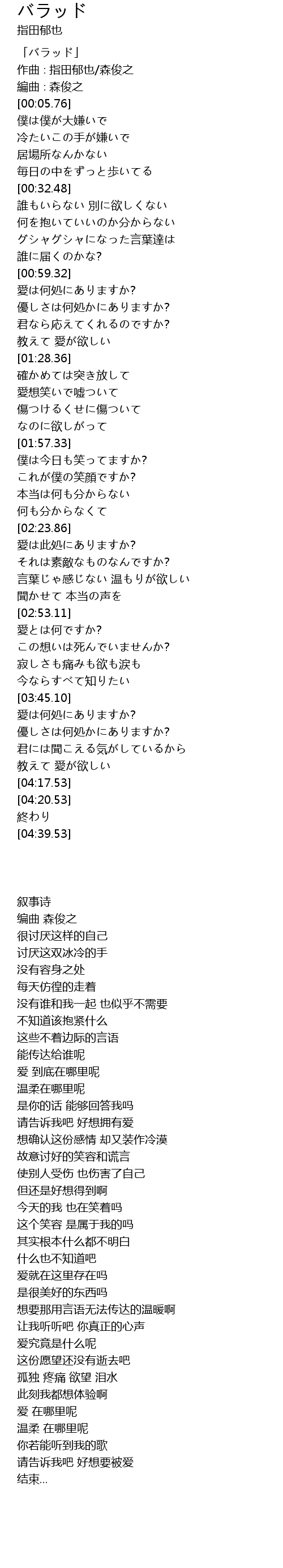 | [00:00.76] | 「バラッド」 |