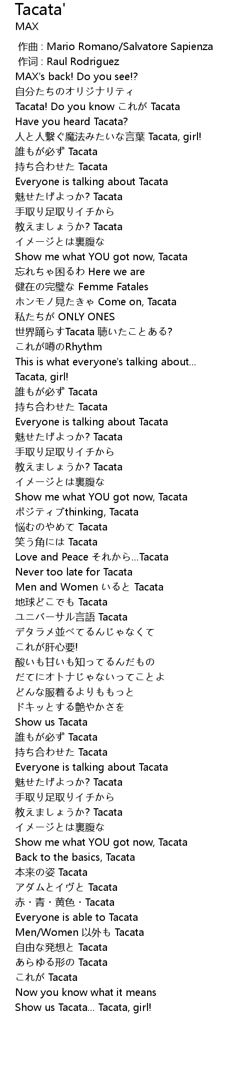 | [00:08.500] | Tacata! Do you know Tacata |