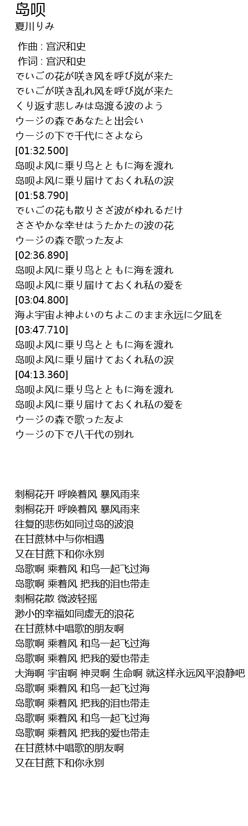 | [04:15.06] | 岛歌啊 乘着风 和鸟一起飞过海 |
