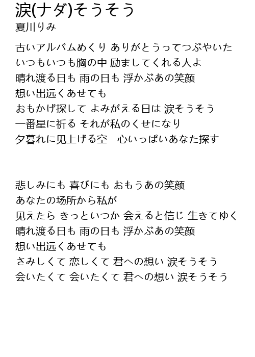 | 歌曲 | 涙(ナダ)そうそう |