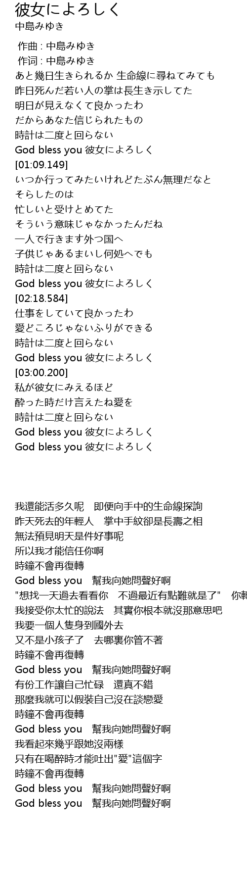 | [03:32.108] | God bless you 彼女によろしく |