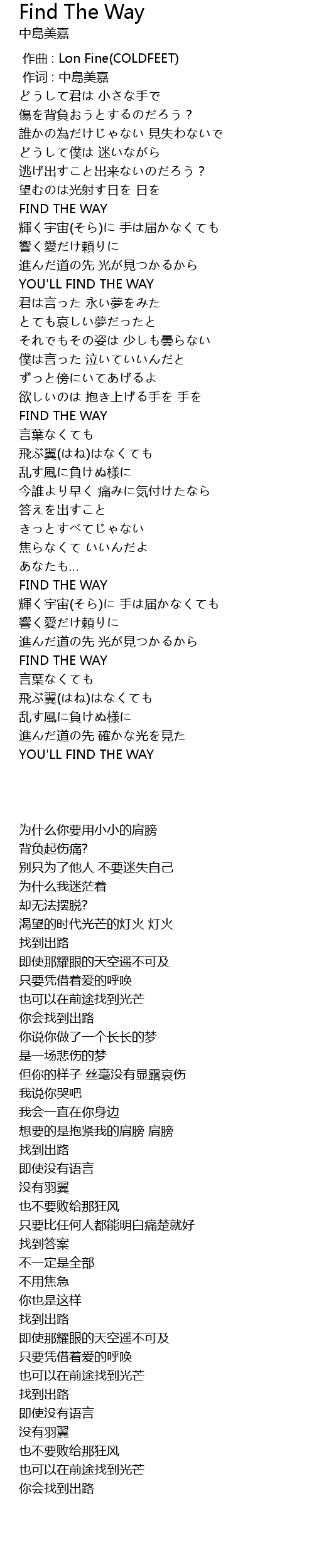| 歌曲 | Find The Way |