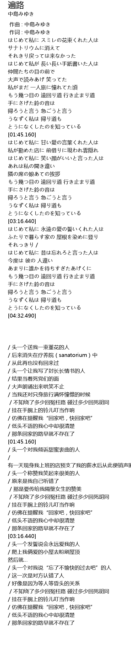 | [04:00.340] | もう幾つ目の 遠回り道 行き止まり道 |