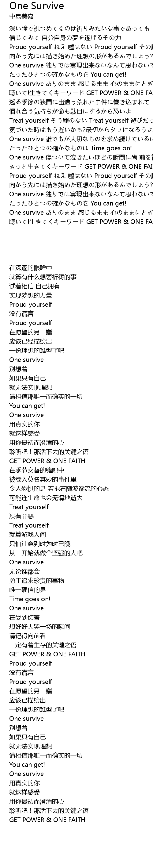 | One survive 独りでは実現出来ないなんて思わないで居て | |