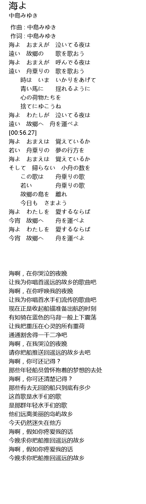 | [00:44.07] | 海よ わたしが 泣いてる夜は |