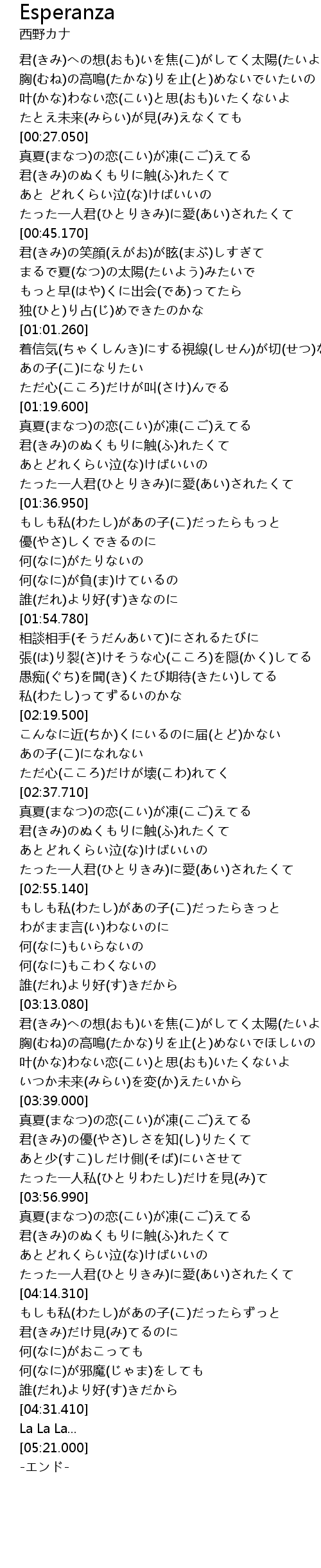 | [00:17.720] | 叶(かな)わない恋(こい)と思(おも)いたくないよ |