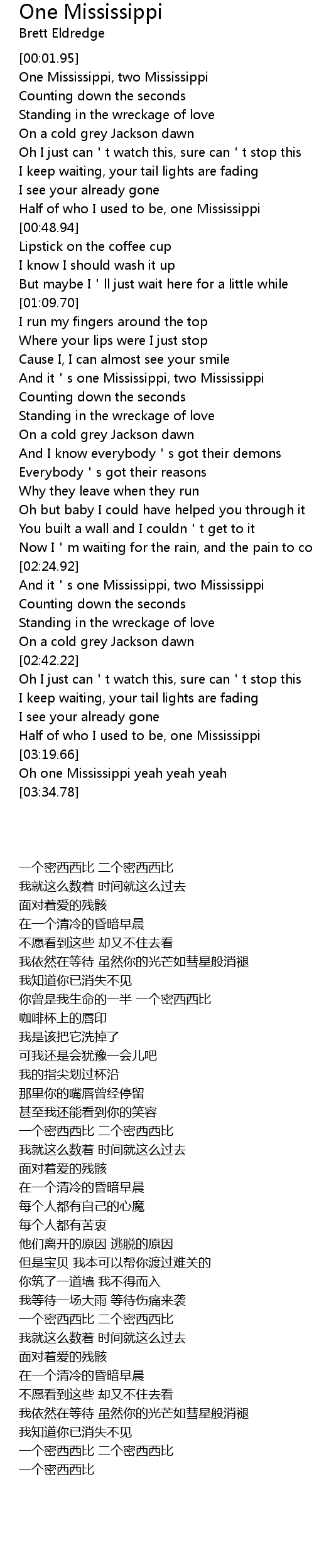 | [03:23.41] | Oh one Mississippi yeah yeah yeah |