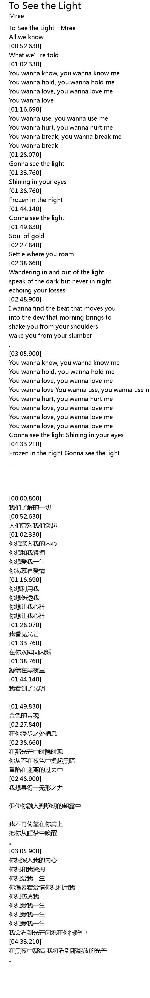 | [00:00.800] | To See the Light - Mree |