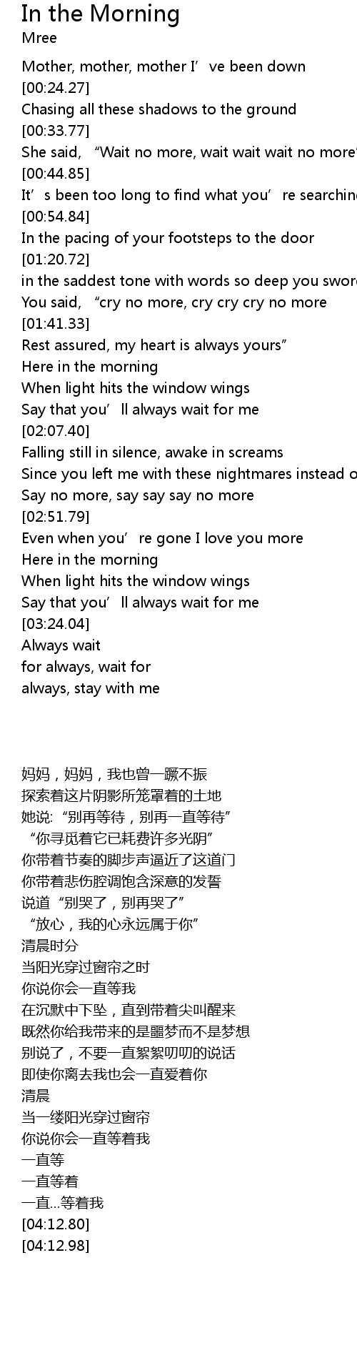| [01:50.89] | Here in the morning |