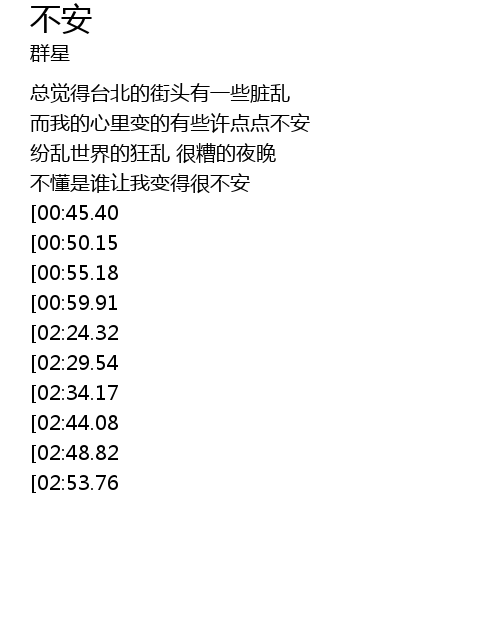 | [00:37.67] | 不懂是谁让我变得很不安 |