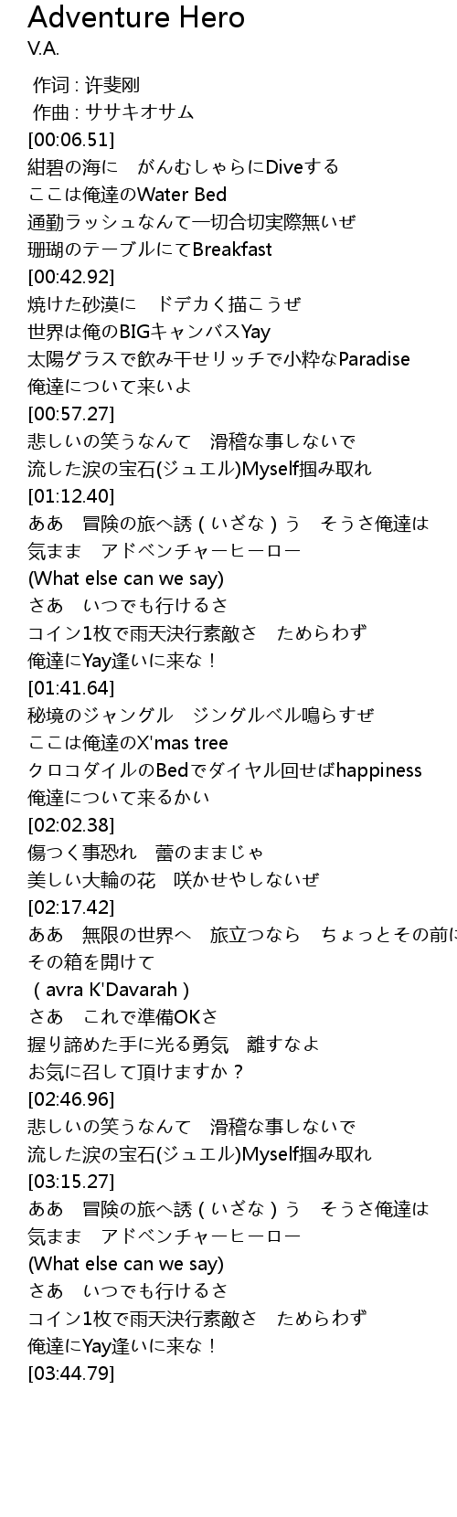 | [03:24.49] | 気まま アドベンチャーヒーロー |