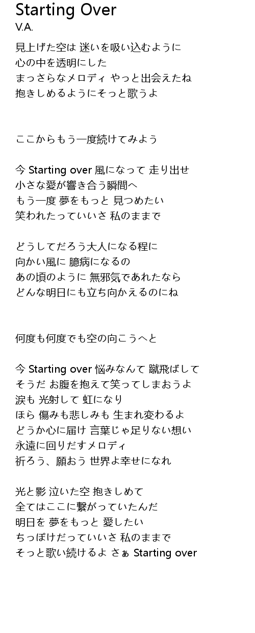 | 今 Starting over 悩みなんて 蹴飛ばして | |