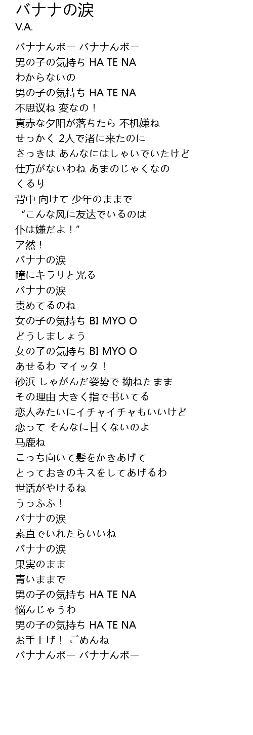 | [00:07.11] | 男の子の気持ち HA TE NA |