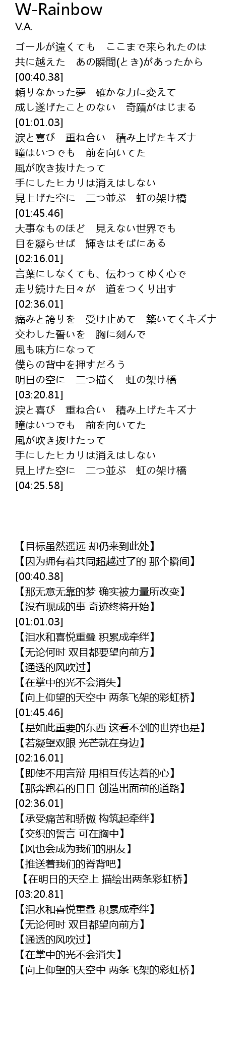 | [04:13.06] | 見上げた空に 二つ並ぶ 虹の架け橋 |