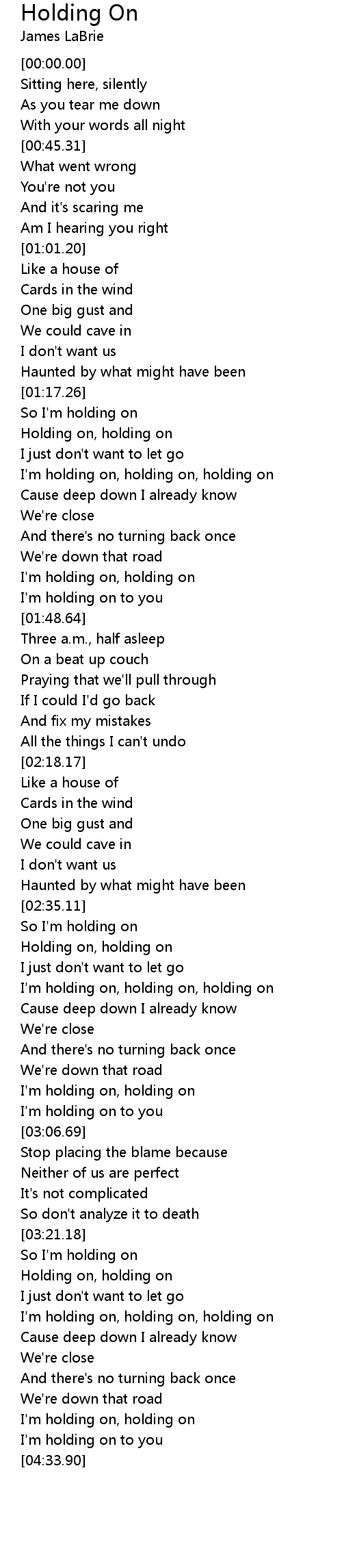 I'm holding on, holding on, holding on |