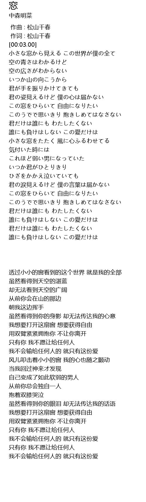 | [03:16.34] | この窓をひらいて 自由になりたい |