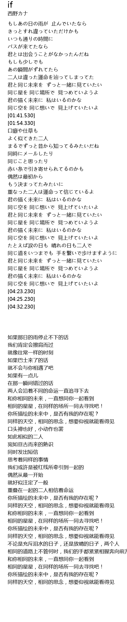 | [04:07.010] | 君の描く未来に 私はいるのかな |