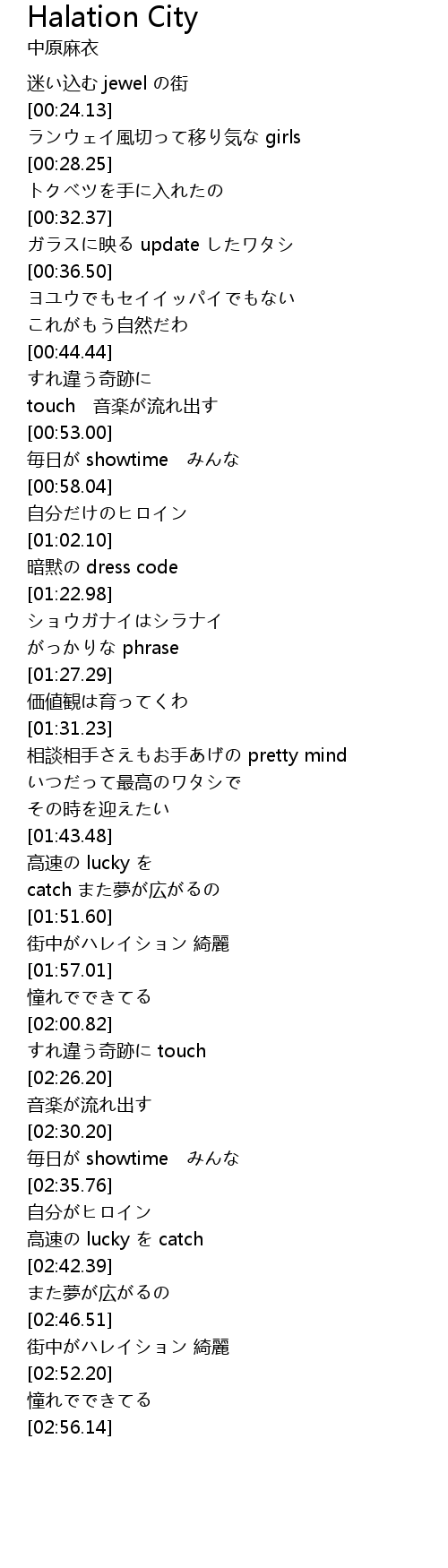 | [02:47.32] | 街中がハレイション 綺麗 |