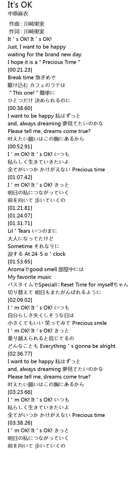 | [00:53.62] | I'm OK! It's OK! いつも |