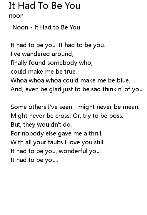 | It had to be you, wonderful you. | |