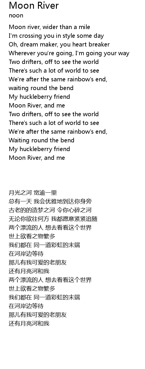 Moon river, wider than a mile |