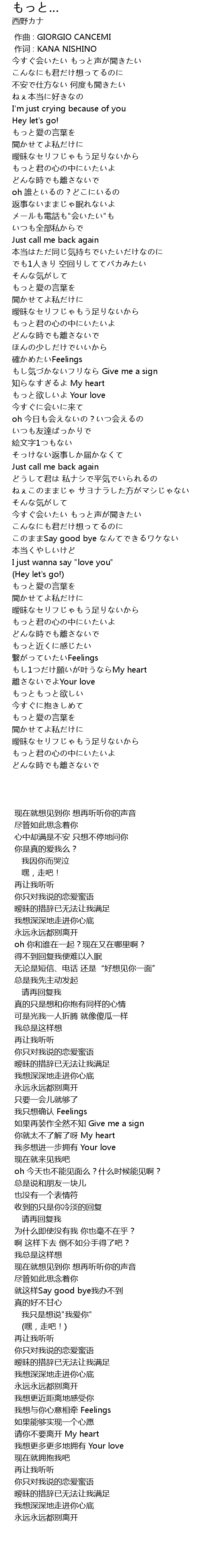 | [00:00.433] | 作词 : KANA NISHINO |