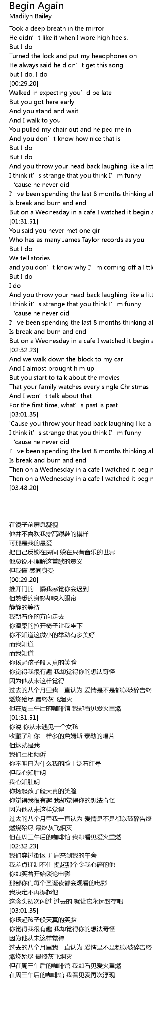 | 歌曲 | Begin Again |