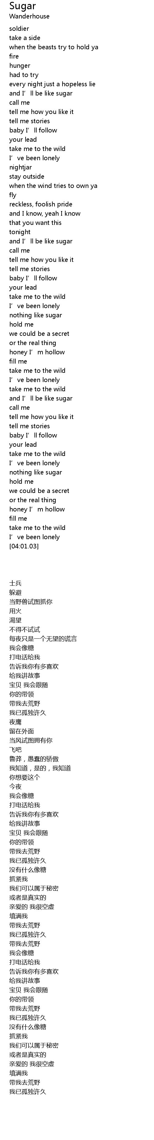 | [03:23.01] | and I' ll be like sugar |