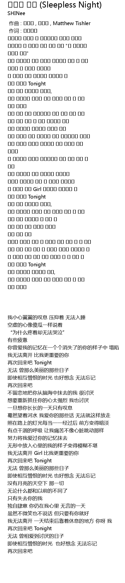 | 歌曲 | 떠나지 못해 (Sleepless Night) |
