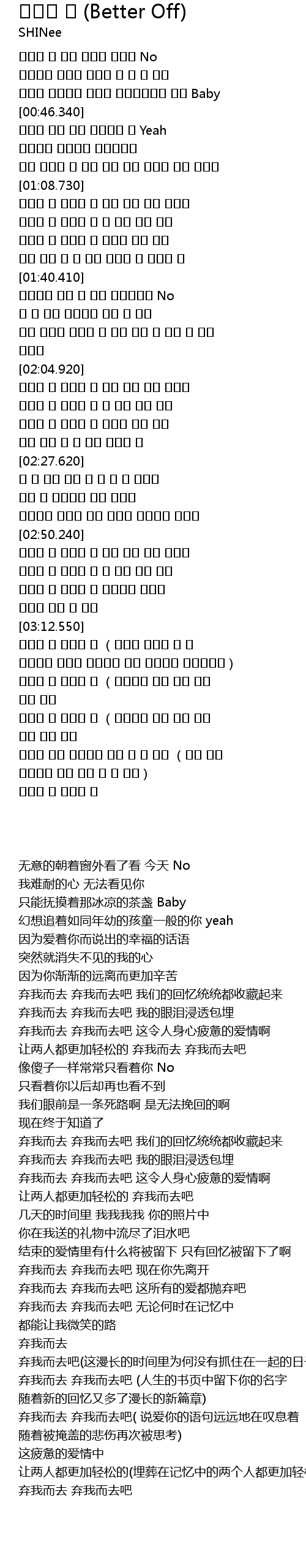 | [02:50.450] | 弃我而去 弃我而去吧 现在你先离开 |