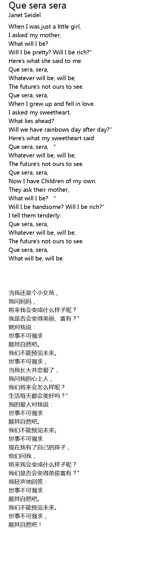 | [00:17] | Will I be pretty? Will I be rich?" |