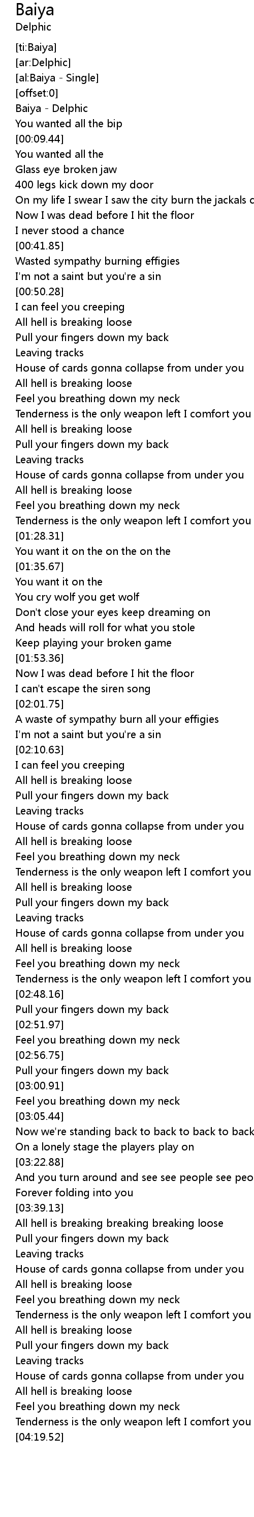| [03:40.02] | All hell is breaking breaking breaking loose |